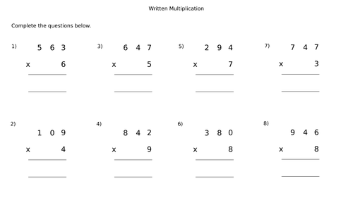 2 Digit Multiplication Worksheet - Math Salamanders Welcome to our 2 Digit Multiplication Worksheets page. We have plenty of worksheets on this page to help you practice the skills of multiplying 2-digit numbers by 1 or 2 digits. 2 Digit Multiplication Worksheets. We have split the worksheets on this page into two sections: 2-digit x 1-digit multiplication (3rd grade) 2-digit x 2-digit multiplication (4th grade) Each section … › worksheetsMath Worksheets Free | Printable Math Worksheets For multiplication, you will find worksheets starting from basic single digit numbers multiplication right up to larger numbers, word problems and more sophisticated topics. At higher levels, topics like addition don’t just stick with the basic number operations. › math › multiplication3 Digit Multiplication Worksheets: 3 digit x 2 digit and 3 ... 3 Digit Multiplication Worksheets: 3 digit x 2 digit and 3 gigit x 1 digit multiplication worksheets for 3rd and 4th grade. › math-worksheetsFree Online Math Worksheets With Solutions A compilation of free math worksheets categorized by topics. Some worksheets are dynamically generated to give you a different set to practice each time. They are also interactive and will give you immediate feedback, Number, fractions, addition, subtraction, division, multiplication, order of operations, money and time worksheets, with video lessons, examples and step-by-step solutions.